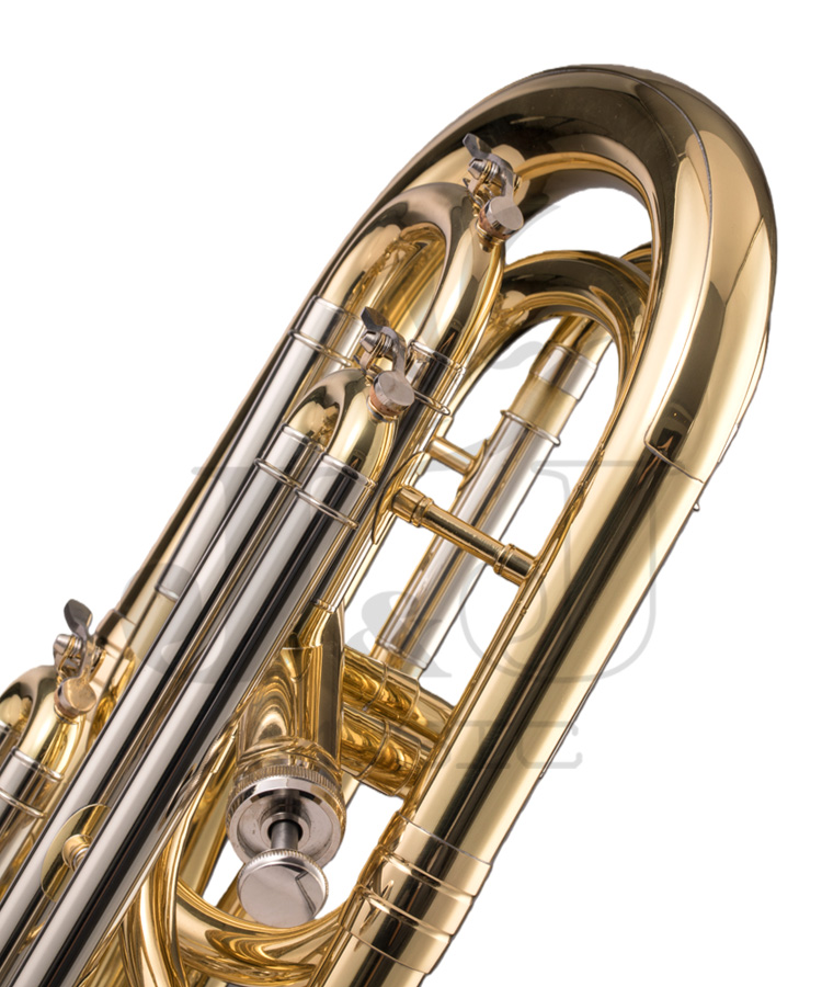 * Bb tone 4 piston valves baritone* Stainless steel valves* Gold lacquer finish* Yellow brass material* Bore size: 12.8-13.5mm* Bell size: 211.5mm* W/high-grade ABS hard case