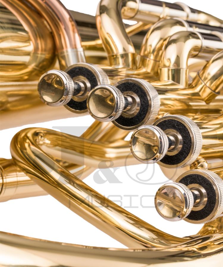* Bb tone 4 piston valves euphonium* Stainless steel valves* Gold lacquer finish* Bore size: 14.4mm* Bell size: 300mm* W/high-grade ABS hard case