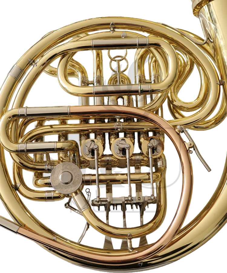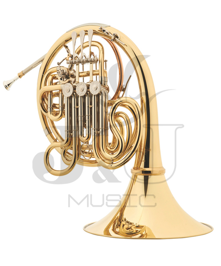 * Bb/F tone 4 keys professional French horn* Double line with no de-tachable bell* Gold lacquer finish* Bore size: 12mm* Bell size: 310mm* W/high-grade black series waterproof canvas case