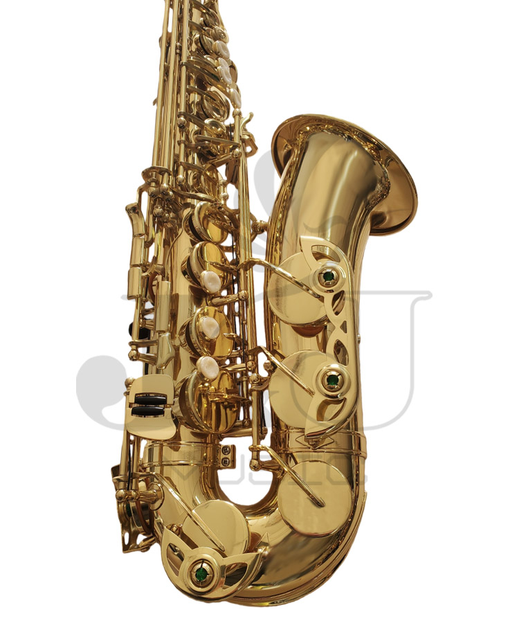 * Eb alto sax like YAMAHA 82Z with high F# key* Yellow brass material, electrophoresis coating finish* Italy made pads & springs* All over hand engravings on bell, body, keys & necks* W/high-grade black-gray series waterproof canvas case