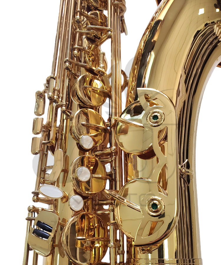 * Bb tenor sax like SELMER 802 with high F# key* Yellow brass material, gold lacquer finish* Quality pads & springs* Hand engravings on bell* W/popular black series waterproof canvas case