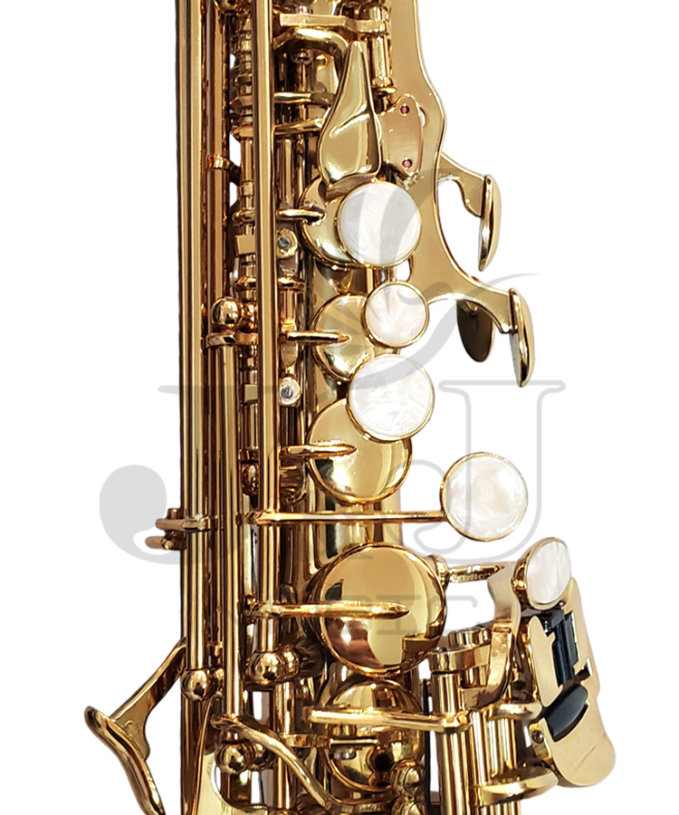 * Bb one-piece body soprano sax like Yanagisawa with high G key* Yellow brass material, electrophoresis coating finish* Italy made pads & springs* Nice hand engravings on bell * W/high-grade black-gray series waterproof canvas case