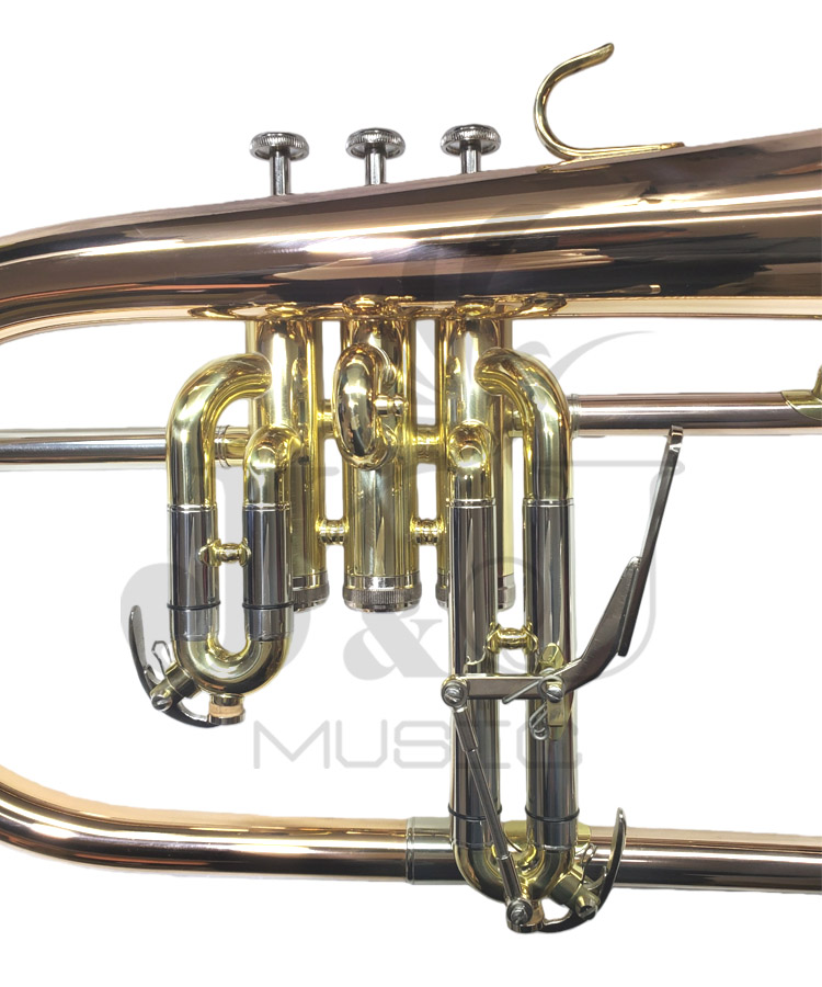 * Bb tone flugelhorn * Phosphor copper bell & lead pipe * Cupronickel slides * Stainless steel valves / Monel valves * Gold lacquer finish