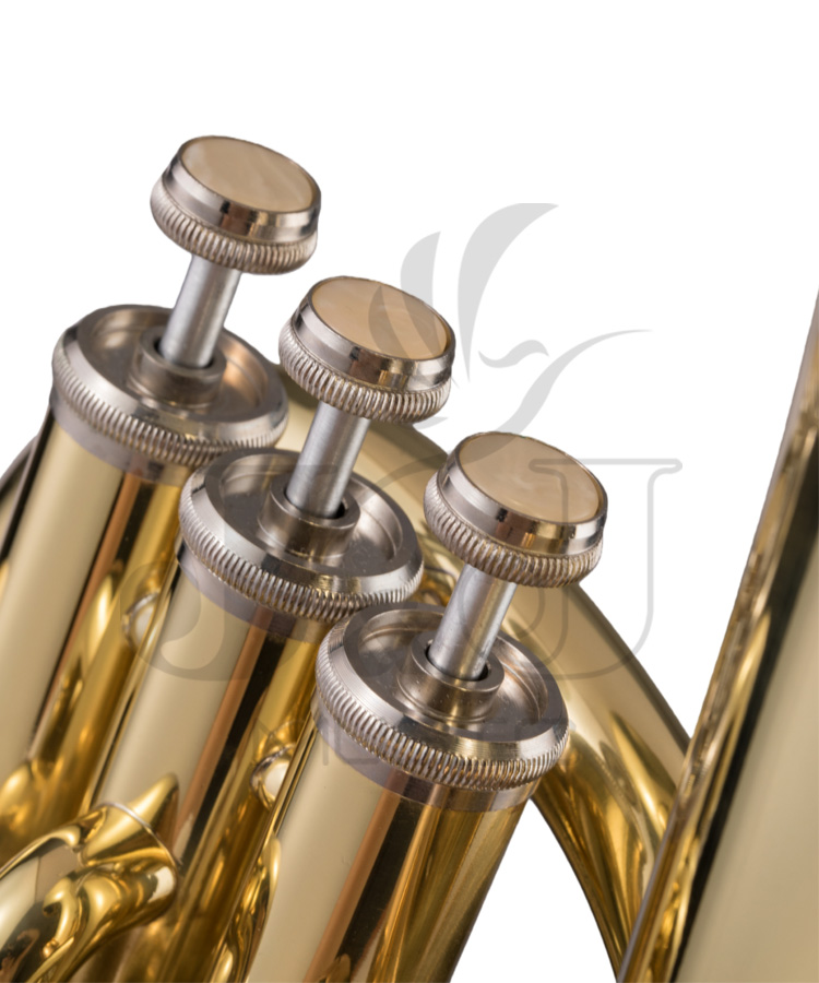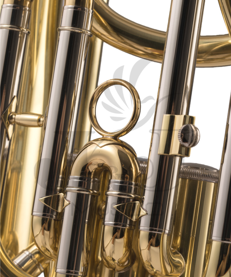 * Bb tone 3 piston valves baritone* Stainless steel valves* Gold lacquer finish* Yellow brass material* Bore size: 12.8-13.5mm* Bell size: 211.5mm* W/high-grade ABS hard case