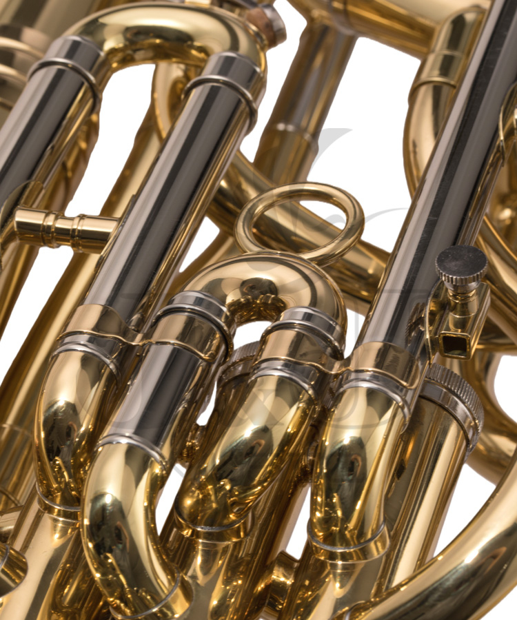* Bb tone 4 piston valves baritone* Stainless steel valves* Gold lacquer finish* Yellow brass material* Bore size: 12.8-13.5mm* Bell size: 211.5mm* W/high-grade ABS hard case
