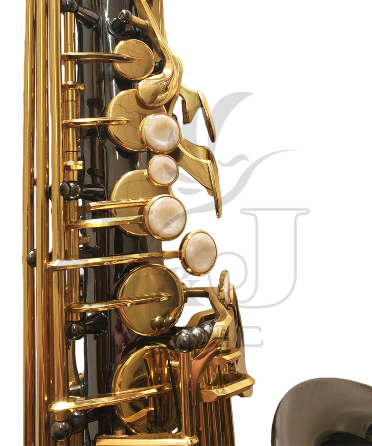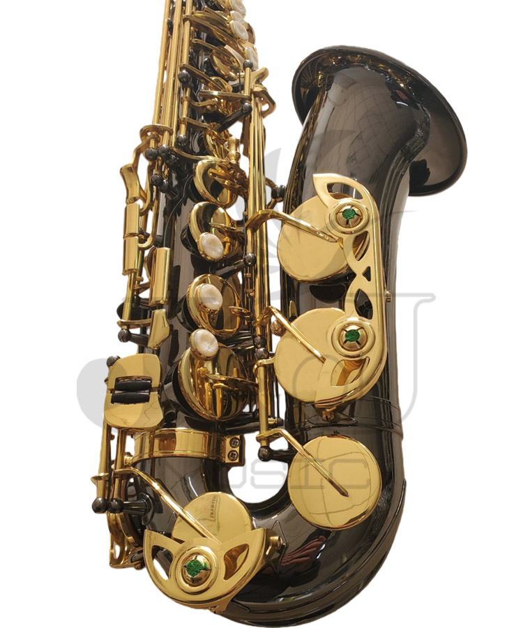 * Eb alto sax like YAMAHA 82Z with high F# key* Yellow brass material, black nickel plated body & golden keys* Italy made pads & springs* All over hand engravings on bell, body, keys & necks* W/high-grade black-gray series waterproof canvas case