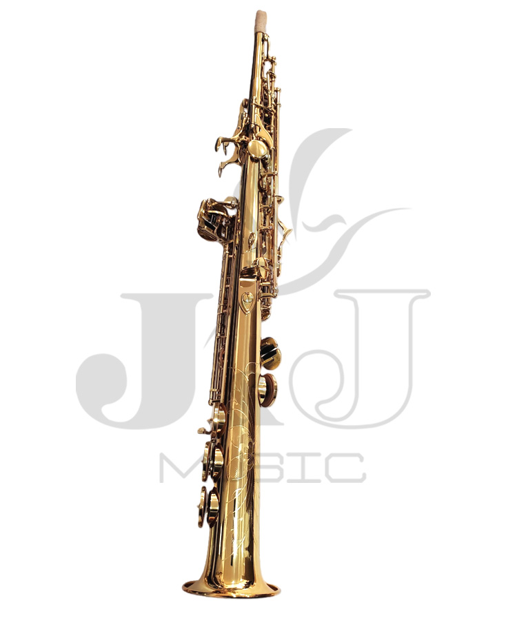 * Bb one-piece body soprano sax like Yanagisawa with high G key* Yellow brass material, electrophoresis coating finish* Italy made pads & springs* Nice hand engravings on bell * W/high-grade black-gray series waterproof canvas case
