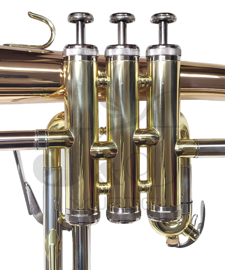 * Bb tone flugelhorn * Phosphor copper bell & lead pipe * Cupronickel slides * Stainless steel valves / Monel valves * Gold lacquer finish